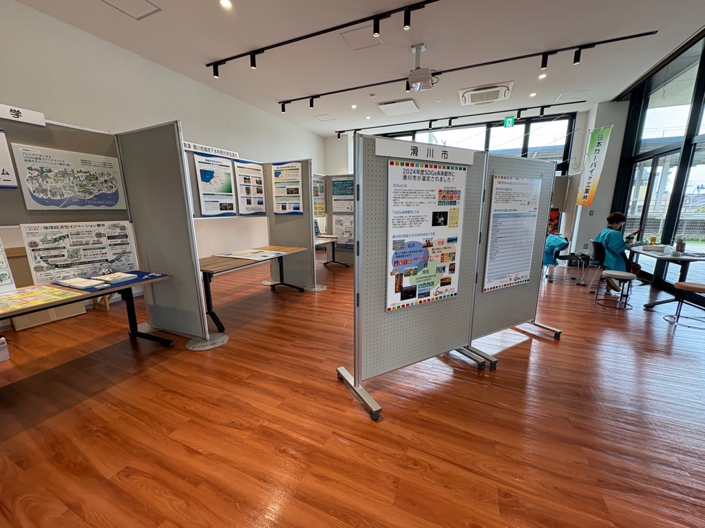ブースでは、アルミ缶がどのようにリサイクルされ、新しい製品に生まれ変わるのかをパネルで解説。当日は滑川市SDGs推進課をはじめとして地元企業、県内大学等様々な立場から地球温暖化防止や資源保全についての取組の紹介がされていました。