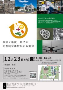 令和7年度 第2回「先進軽金属材料研究集会」を開催いたします。
