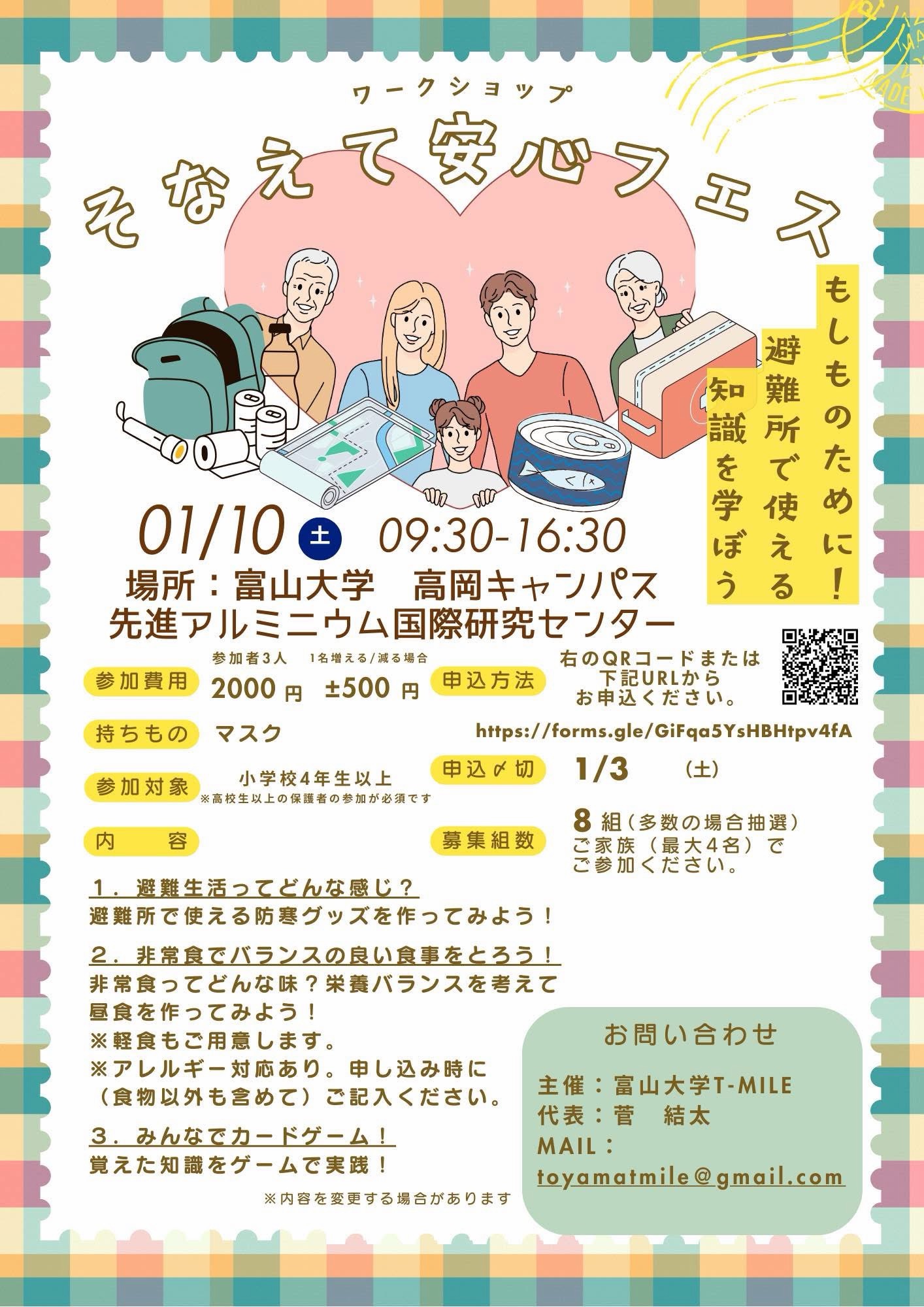 令和8年1月10日富山大学先進アルミニウム国際研究センターにて、「そなえて安心フェス」を開催いたします。